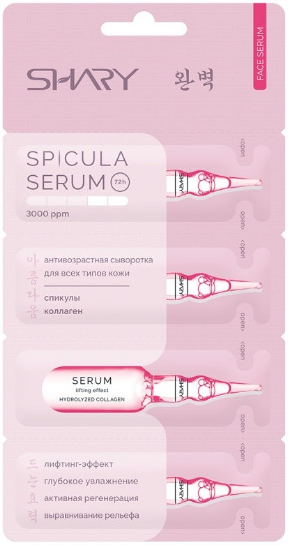 Корейская сыворотка SHARY со спикулами и коллагеном – это инновационный продукт для ухода за кожей, который сочетает мощные антивозрастные компоненты с эффектом укрепления.