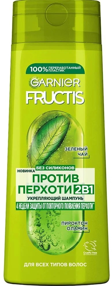 Шампунь 2 в 1 от перхоти для всех типов волос, совмещает в себе очищение кожи головы и кондиционирование волос. Формула с пиритионом цинка и экстрактом листьев зеленого чая заметно уменьшает количество перхоти с первого применения и препятствует ее повторному появлению. Благодаря активному концентрату фруктов волосы день за днем обретают силу и здоровый блеск.