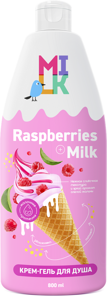 МИЛК Крем-Гель для душа МОЛОКО и МАЛИНА 800 мл