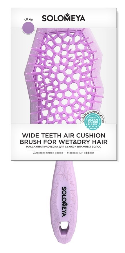 SOLOMEYA Расческа массажная с широкими зубьями СИРЕНЕВАЯ