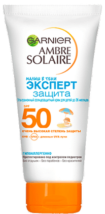 Средство для защиты от солнца, разработанное специально для нежной кожи детей от 0 до 3х лет. Оно имеет высокую степень защиты SPF 50+, гипоаллергенно.