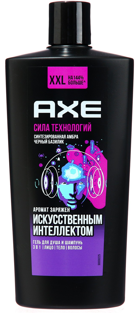 AXE SHOWER предлагает тебе попробовать оба варианта! Гель для душа и шампунь "Сила Технологий" — результат нашего эксперимента, где искусственный интеллект выбирал аромат. Спойлер: выбор был неожиданным, но уникальным! Гель для душа AXE "Сила Технологий" с ароматом черного базилика, амбры, кориандра и имбиря смешивает дерзкий характер смягченных корицей, кашемировым деревом и ванилью.