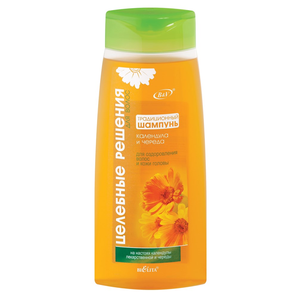 Традиционный ШАМПУНЬ для оздоровления волос и кожи головы Календула и череда основан на растительных настоях череды и календулы, которые оздоравливают волосы и делают их более сильными и красивыми. Шампунь отлично промывает волосы в воде любой жесткости, придает волосам лёгкость и пышность.