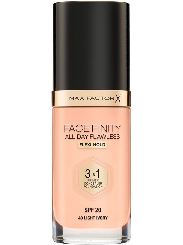 Max Factor Facefinity All Day Flawless 3 в 1 — это жидкая Тональная основа, сочетающая в себе праймер и консилер, которая создает стойкое и безупречное покрытие. Формула: Улучшенная Эмульсия на основе воды и силикона обеспечивает качественное покрытие и легко наносится благодаря специальной формуле, поэтому теперь сделать профессиональный макияж очень просто. Праймер выравнивает поверхность кожи и обеспечивает стойкость макияжа, а консилер маскирует недостатки и изъяны, придавая лицу безупречный вид. Легкая формула Max Factor Facefinity, содержащая солнцезащитный фактор SPF 20 для защиты кожи от солнечных лучей, предотвращает появление жирного блеска, поскольку в состав не входят масла.