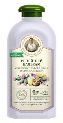 Репейное масло укрепляет и питает, расчёсывание облегчает. Если волосы повреждены, то без него точно не обойтись – витамины и жирные кислоты репейного масла помогут окрашенным и ослабленным волосам. Масло камелии вернёт им гладкость и блеск, экстракт арники оздоровит и защитит, а корень солодки предупредит их ломкость. Бальзаму репейному удастся вернуть силу и блеск поврежденным волосам, а окрашенным помочь выглядеть здоровыми, гладкими