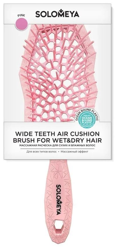 SOLOMEYA Расческа массажная с широкими зубьями РОЗОВАЯ